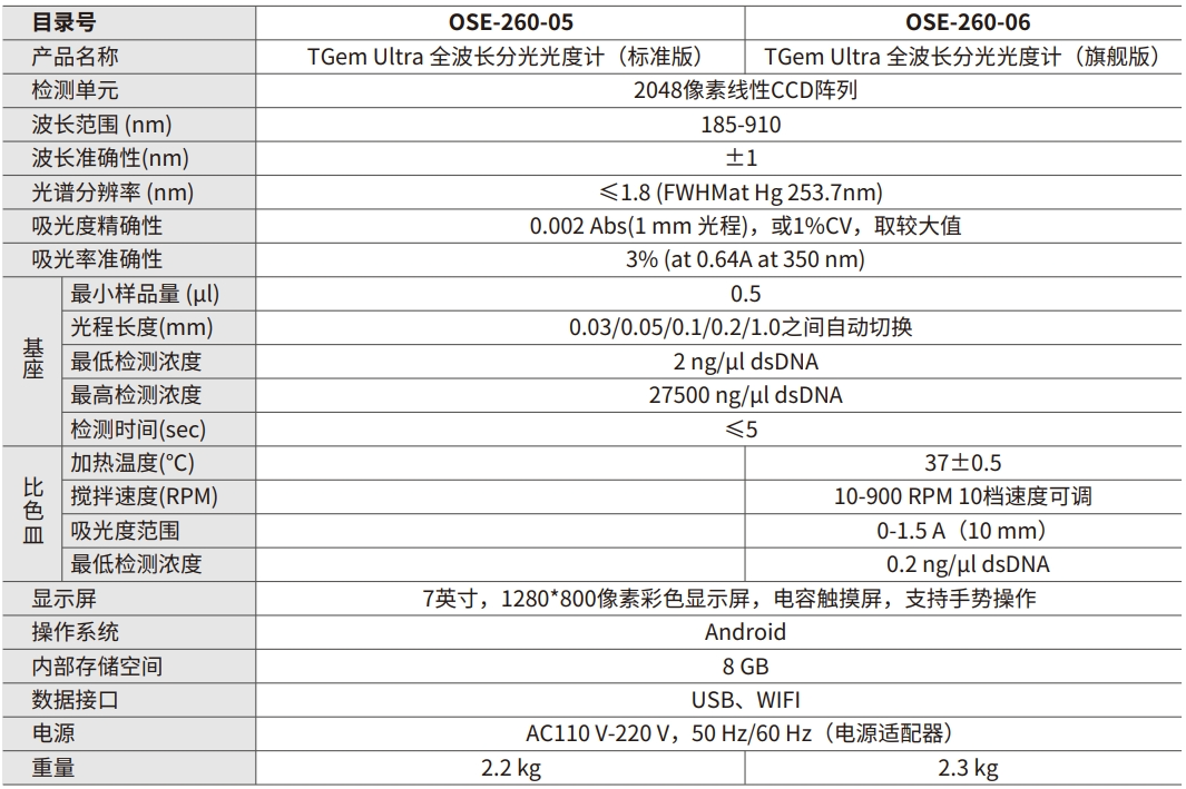 TGem Ultra 全波长分光光度计(OSE-260-05/06)
