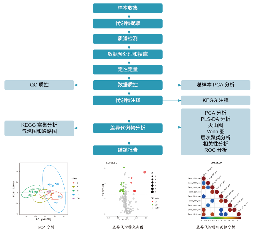 非靶代谢组(Untargeted Metabolomics)采用气相色谱- 质谱联用(GC-MS)/ 液相色谱- 质谱联用(LC-MS)方法对生物体系(组织、细胞等)的内源性代谢物进行无偏向的检测。通过生物信息学手段研究受到扰动后内源性代谢物的整体代谢特征或变化规律,可以发现具有差异的代谢物、潜在的生物标志物及其所处的代谢途径,进而分析和探索引起这种生命现象或病理现象背后的代谢机制。与传统的代谢物测定或靶向代谢组学相比,非靶向代谢组学得到的代谢物信息更客观全面,从而避免研究的方向性错误。