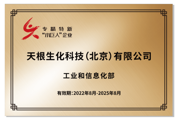 【华亿体育电竞】(中国)有限公司(以下简称“天根生化”)入选国家级专精特新“小巨人”企业,已收到工业和信息化部颁发的国家级《专精特新“小巨人”企业》证书,有效期自2022年8月至2025年8月止。