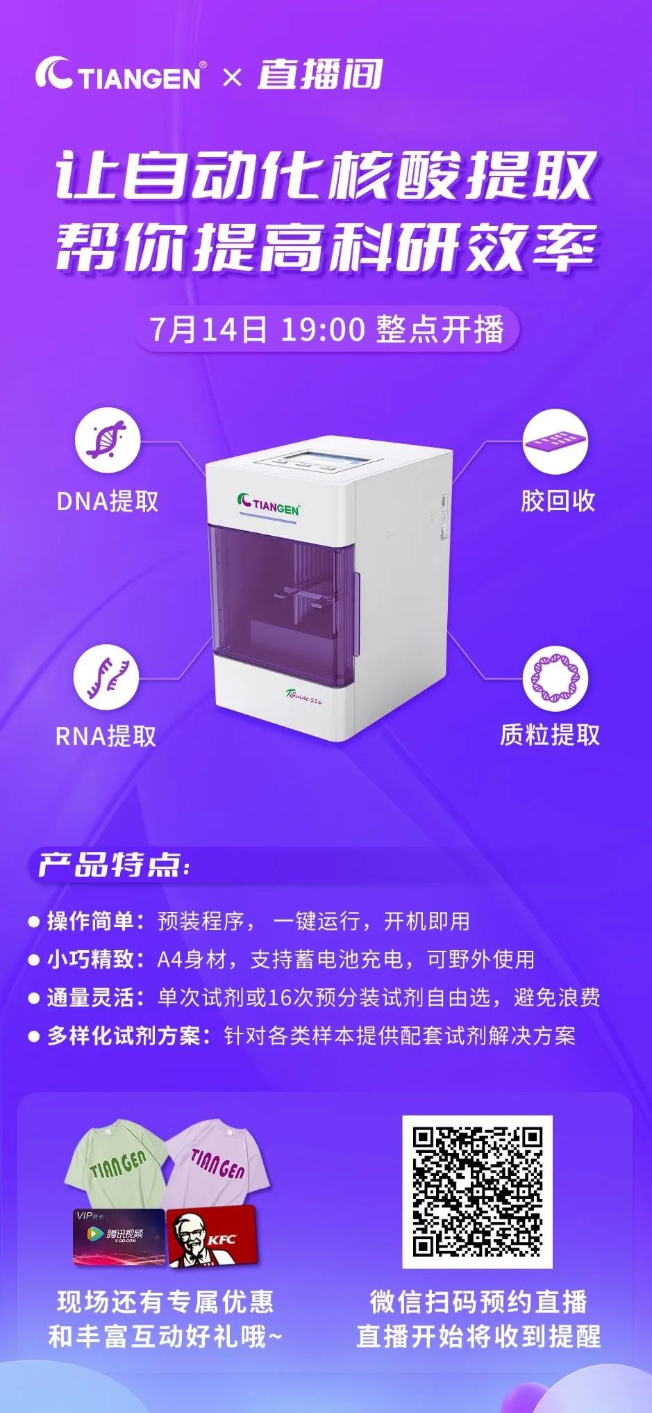 现在申请试用TGuide S16全自动核酸提取纯化仪,测试1-3种试剂(可免费提供仪器及试用装)并反馈试用结果,即可获得惊喜好礼!