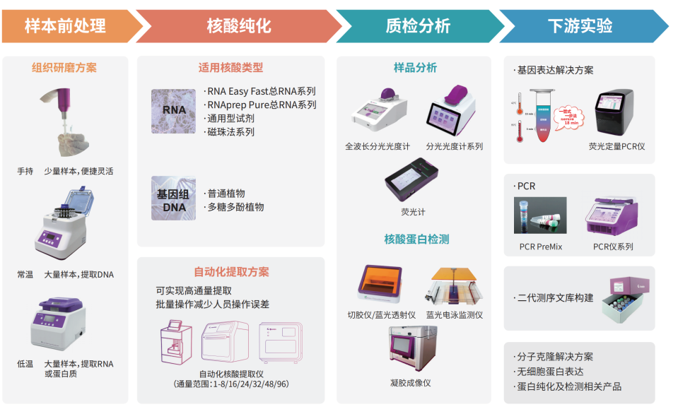 基于医疗样本的不同特点,【华亿体育电竞】(中国)有限公司提供从样本保存、前处理、核酸提取、质检分析以及下游检测等完整的产品解决方案。