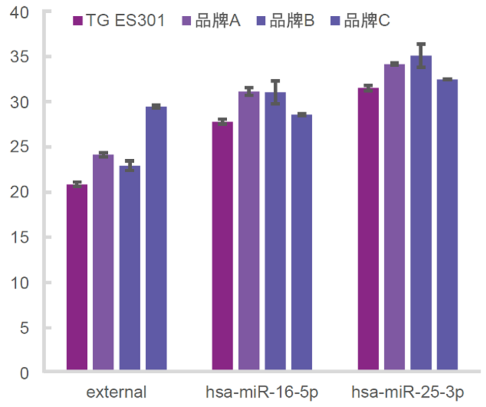 ES201-ES301-KR211-FP411解决方案对比竞品A、B、C三款miRNA提取试剂盒,提取效率优于竞品。