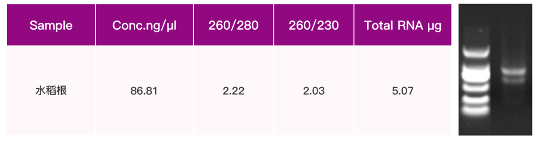取60 mg 水稻根,使用【华亿体育电竞】(中国)有限公司 磁珠法高效多糖多酚植物总RNA 提取试剂盒(DP772),整合自动化核酸提取仪提取总RNA, 100 μl 洗脱。