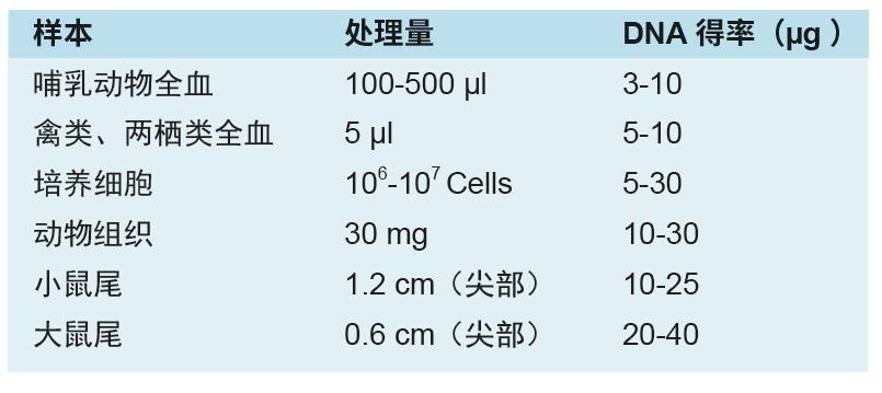 用于血液、细胞和动物组织的基因组 DNA 提取