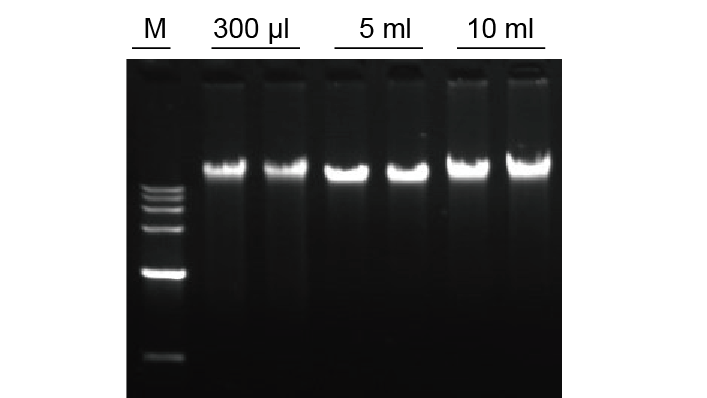 ● 应用广泛:可处理0.1-20 ml血液样本,既可以获得高得率的DNA,OD260/230比值稳定在2.0以上,盐离子及蛋白质等杂质残留可以满足芯片杂交,高通量测序等更多对DNA纯度高的下游应用。