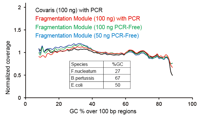 ■ DNA 片段化过程和 PCR 富集过程无明显碱基偏好性,测序均一度好。
