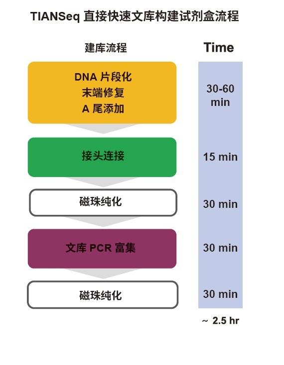 ■ 一管式酶促反应,操作简便,省去多步纯化步骤,整个建库流程仅需